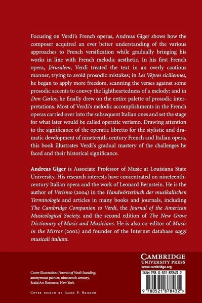 Focusing on Verdi's French operas, Giger shows how the composer acquired an ever better understanding of the various approaches to French versification while gradually bringing his works in line with French melodic aesthetic. In his first French opera, Jérusalem, Verdi treated the text in an overly cautious manner, trying to avoid prosodic mistakes; in Les Vêpres siciliennes he began to apply more freedom, scanning the verses against some prosodic accents to convey the lightheartedness of a melody; and in Don Carlos he finally drew on the entire palette of prosodic interpretations. Most of Verdi's melodic accomplishments in the French operas carried over into the subsequent Italian ones, setting the stage for what later would be called operatic verismo. Drawing attention to the significance of the libretto for the development of nineteenth-century French and Italian opera, this text illustrates Verdi's gradual mastery of the challenges he faced, and their historical significance.