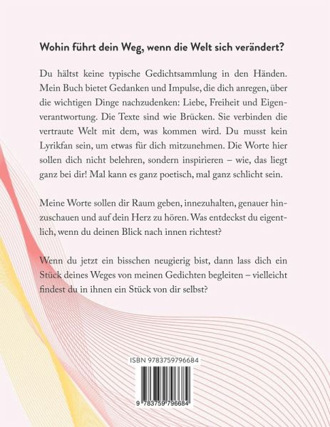 Verdichtete Ansichten ist eine Ansammlung von 62 Gedichten, die den Wandel unserer Zeit thematisieren - vom "Haben" zum "Sein", von Angst zu Liebe, von Zerrissenheit zu Harmonie. Die Texte sind klar und berührend und bringen den Leser dazu, innezuhalten und sich auf die eigene Intuition zu besinnen. Außerdem sind eigene Fotos, passend zu den Gedichten, im Buch enthalten. Die Themen reichen von der Kraft der Liebe als treibender Lebensenergie über die Verbindung zwischen Mensch und Natur bis hin zu Fragen des persönlichen und gesellschaftlichen Bewusstseinswandels. Jedes Gedicht ist ein Impuls,…mehr