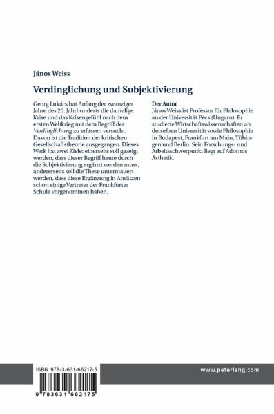 Georg Lukács hat Anfang der zwanziger Jahre des 20. Jahrhunderts die damalige Krise und das Krisengefühl nach dem ersten Weltkrieg mit dem Begriff der Verdinglichung zu erfassen versucht. Davon ist die Tradition der kritischen Gesellschaftstheorie ausgegangen. Dieses Werk hat zwei Ziele: einerseits soll gezeigt werden, dass dieser Begriff heute durch die Subjektivierung ergänzt werden muss, andererseits soll die These untermauert werden, dass diese Ergänzung in Ansätzen schon einige Vertreter der Frankfurter Schule vorgenommen haben.