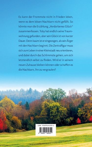 Es kann der Frommste nicht in Frieden leben, wenn es dem bösen Nachbarn nicht gefällt. So könnte man die Erzählung "Verdorbenes Glück" zusammenfassen. Toby hat endlich seine Traumwohnung gefunden, aber sein Glück ist von kurzer Dauer. Denn kaum ist er eingezogen, als sein Ärger mit den Nachbarn beginnt. Die Zentralfigur muss sich zum Leben in einer Kleinstadt neu orientieren, und dabei durch das Schlimmste gehen, um sich letztendlich selbst zu finden. Wird er in seinem neuen Zuhause bleiben können oder schaffen es die Nachbarn, ihn zu vergraulen?