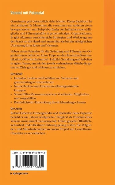 Der Gründer, freie Journalist und Autor Roland Gebert erlebte und gestaltete in seiner Laufbahn als Freiberufler, Vereinsvorstand und Firmeninhaber alle Entwicklungsschritte von Organisationen und Arbeitsgruppen. Als Journalist produzierte er redaktionelle Beiträge und Werbespots für Rundfunksender, arbeitete u. a. als Autor für den MDR (Sendung "Einfach Genial") und konzipierte gemeinsam mit anderen Spiel- und Lernsoftware für Kinder und Jugendliche. Er ist Vorstand einer gemeinnützigen Genossenschaft sowie Vorsitzender des Peißnitzhaus e. V. in Halle (Saale). Durch gezielte Öffentlichkeitsarbeit und reflektierte Führung gelang es ihm, die Mitglieder- und Mitarbeiterzahlen der Organisationen zu vervielfachen. Seine gut 20jährige Erfahrung in Aufbau und Führung von gemeinnützigen Organisationen sowie Unternehmen gibt er in vorliegendem Buch weiter.