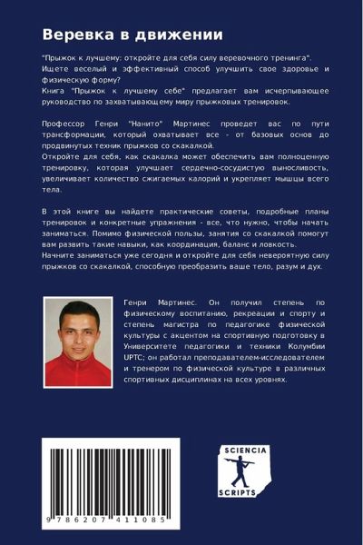 "Pryzhok k luchshemu: otkrojte dlq sebq silu werewochnogo treninga".Ischete weselyj i äffektiwnyj sposob uluchshit' swoe zdorow'e i fizicheskuü formu? Kniga "Pryzhok k luchshemu sebe" predlagaet wam ischerpywaüschee rukowodstwo po zahwatywaüschemu miru pryzhkowyh trenirowok.Professor Genri "Nanito" Martines prowedet was po puti transformacii, kotoryj ohwatywaet wse - ot bazowyh osnow do prodwinutyh tehnik pryzhkow so skakalkoj.Otkrojte dlq sebq, kak skakalka mozhet obespechit' wam polnocennuü trenirowku, kotoraq uluchshaet serdechno-sosudistuü wynosliwost', uwelichiwaet kolichestwo szhigaemyh kalorij i ukreplqet myshcy wsego tela.V ätoj knige wy najdete prakticheskie sowety, podrobnye plany trenirowok i konkretnye uprazhneniq - wse, chto nuzhno, chtoby nachat' zanimat'sq. Pomimo fizicheskoj pol'zy, zanqtiq so skakalkoj pomogut wam razwit' takie nawyki, kak koordinaciq, balans i lowkost'.Nachnite zanimat'sq uzhe segodnq i otkrojte dlq sebq neweroqtnuü silu pryzhkow so skakalkoj, sposobnuü preobrazit' washe telo, razum i duh.