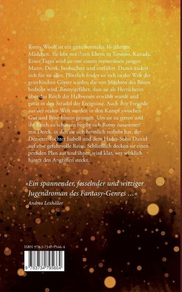 Romy Woolf ist ein ganz normales 16-jähriges Mädchen. Sie lebt mit ihren Eltern in Toronto, Kanada. Eines Tages wird sie von einem mysteriösen jungen Mann, Derek, beobachtet und entführt. Damit ändert sich für sie alles. Plötzlich findet sie sich in der Welt der griechischen Götter wieder, die von Mächten des Bösen bedroht wird. Romy erfährt, dass sie als Herrscherin über das Reich der Halbwesen erwählt wurde und gerät in den Strudel der Ereignisse. Auch ihre Freunde aus der realen Welt werden in den Kampf zwischen Gut und Böse hinein gezogen. Um sie zu retten und ihr Reich zu schützen begibt sich Romy zusammen mit Derek, in den sie sich heimlich verliebt hat, der Demeter-Tochter Isabell und dem Hades-Sohn Daniel auf eine gefahrvolle Reise. Schließlich decken sie einen perfiden Plan auf und ihnen wird klar, wer wirklich hinter den Angriffen steckt.