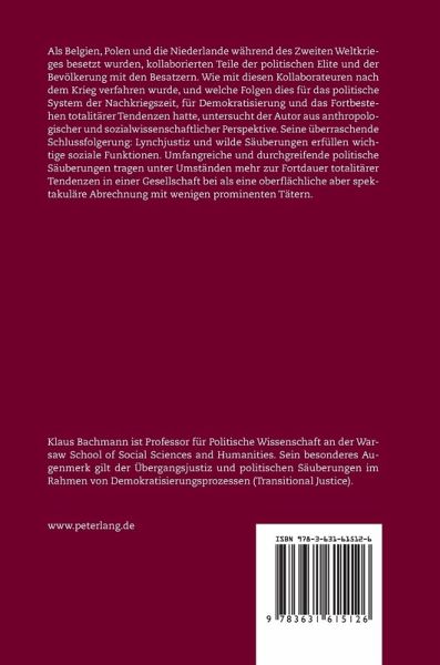 Als Belgien, Polen und die Niederlande während des Zweiten Weltkrieges besetzt wurden, kollaborierten Teile der politischen Elite und der Bevölkerung mit den Besatzern. Wie mit diesen Kollaborateuren nach dem Krieg verfahren wurde, und welche Folgen dies für das politische System der Nachkriegszeit, für Demokratisierung und das Fortbestehen totalitärer Tendenzen hatte, untersucht der Autor aus anthropologischer und sozialwissenschaftlicher Perspektive. Seine überraschende Schlussfolgerung: Lynchjustiz und wilde Säuberungen erfüllen wichtige soziale Funktionen. Umfangreiche und durchgreifende politische Säuberungen tragen unter Umständen mehr zur Fortdauer totalitärer Tendenzen in einer Gesellschaft bei als eine oberflächliche aber spektakuläre Abrechnung mit wenigen prominenten Tätern.