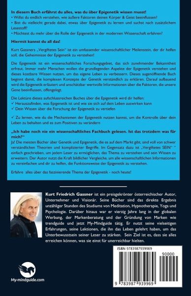 In diesem Buch erfährst du alles, was du über Epigenetik wissen musst! Willst du endlich verstehen, wie äußere Faktoren deinen Körper und Geist beeinflussen? Bist du vielleicht gerade dabei, etwas über Epigenetik zu lernen und suchst nach zusätzlichem Lesestoff? Möchtest du mehr über die Rolle der Epigenetik in der modernen Wissenschaft erfahren? Hiermit kannst du all das! Kurt Gassners VERGIFTETES SEIN ist ein umfassender wissenschaftlicher Meilenstein, der dir helfen soll, die Geheimnisse der Epigenetik zu verstehen! Die Epigenetik ist ein wissenschaftliches Forschungsgebiet, das sich zunehmender Bekanntheit erfreut. Immer mehr Menschen wollen die grundlegenden Aspekte der Epigenetik verstehen und dieses kostbare Wissen nutzen, um das eigene Leben zu verbessern. Dieses augenöffnende Buch beginnt damit, die komplexen Konzepte der Genetik verständlich zu erklären. Darauf aufbauend wird die Epigenetik erläutert und unschätzbar wertvolle Informationen über die Faktoren, die unsere Gene beeinflussen, offengelegt. Die Lektüre dieses aufschlussreichen Buches über die Epigenetik wird dir helfen: Herauszufinden, was Epigenetik ist und wie sie sich auf dein Leben auswirken kann Dein Wissen über die Forschung der Epigenetik zu vertiefen Zu lernen, wie du die Mechanismen der Epigenetik nutzen kannst, um die Kontrolle über dein Leben zu behalten und es zum Positiven zu verändern Ich habe noch nie ein wissenschaftliches Fachbuch gelesen. Ist das trotzdem was für mich? Ja! Die meisten Bücher über Genetik und Epigenetik, die es auf dem Markt gibt, sind voll von schwer verständlichen Theorien und komplizierter Begriffe. Im Gegensatz dazu ist VERGIFTETES SEIN einfach geschrieben, um jedem Leser zu ermöglichen, das Thema zu verstehen und sein Wissen zu erweitern. Der Autor nutzt die Kraft bildlicher Vergleiche, um alle wissenschaftlichen Informationen zu vereinfachen und dir zu helfen, die Funktionsweise der Epigenetik zu verstehen. Erfahre alles über das faszinierende Thema der Epigenetik - noch heute!