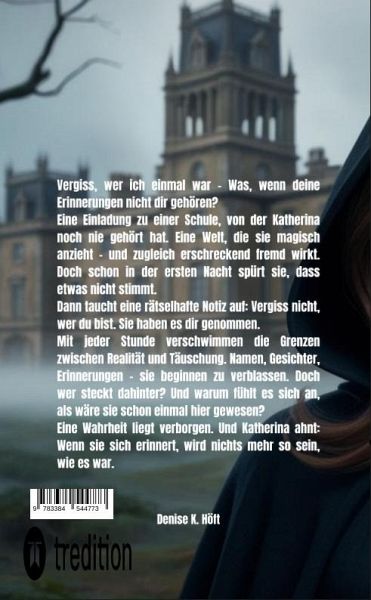 Vergiss, wer ich einmal war - KurzbeschreibungEine Einladung ohne Absender. Eine Schule, von der sie nie gehört hat. Und eine Vergangenheit, die nicht existieren sollte.Als Katherina an der geheimnisvollen Averley Akademie ankommt, fühlt sich alles seltsam vertraut - und doch völlig falsch. Schatten flüstern in den Gängen, Mitschüler scheinen von einem Tag auf den anderen zu verschwinden, und immer wieder taucht ein Name in ihren Gedanken auf: Elias Blackwood. Doch niemand außer ihr scheint sich an ihn zu erinnern.Als Katherina beginnt, Fragen zu stellen, stößt sie auf etwas, das nicht nur ihr eigenes Leben infrage stellt, sondern auch die Grenzen zwischen Realität und Erinnerung verschwimmen lässt. Denn es gibt Dinge, die vergessen wurden - und Dinge, die nie hätten entdeckt werden dürfen..