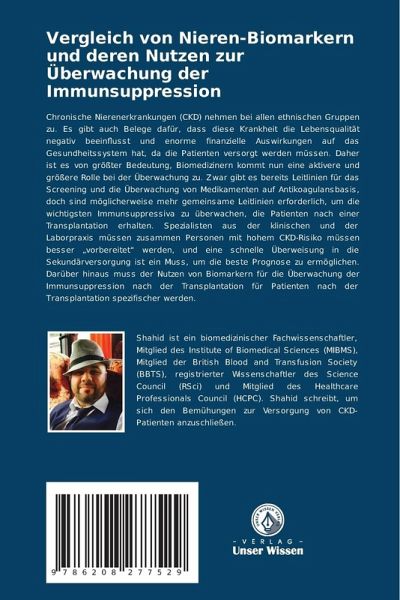 Chronische Nierenerkrankungen (CKD) nehmen bei allen ethnischen Gruppen zu. Es gibt auch Belege dafür, dass diese Krankheit die Lebensqualität negativ beeinflusst und enorme finanzielle Auswirkungen auf das Gesundheitssystem hat, da die Patienten versorgt werden müssen. Daher ist es von größter Bedeutung, Biomedizinern kommt nun eine aktivere und größere Rolle bei der Überwachung zu. Zwar gibt es bereits Leitlinien für das Screening und die Überwachung von Medikamenten auf Antikoagulansbasis, doch sind möglicherweise mehr gemeinsame Leitlinien erforderlich, um die wichtigsten Immunsuppressiva zu überwachen, die Patienten nach einer Transplantation erhalten. Spezialisten aus der klinischen und der Laborpraxis müssen zusammen Personen mit hohem CKD-Risiko müssen besser "vorbereitet" werden, und eine schnelle Überweisung in die Sekundärversorgung ist ein Muss, um die beste Prognose zu ermöglichen. Darüber hinaus muss der Nutzen von Biomarkern für die Überwachung der Immunsuppressionnach der Transplantation für Patienten nach der Transplantation spezifischer werden.