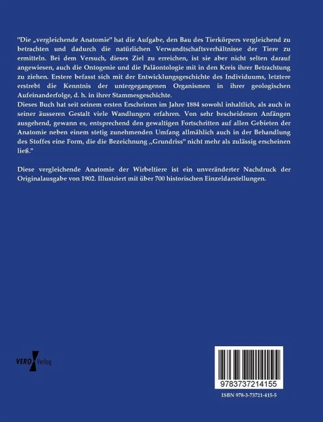 Diese vergleichende Anatomie der Wirbeltiere ist ein unveränderter Nachdruck der Originalausgabe von 1902. Illustriert mit über 700 historischen Einzeldarstellungen.