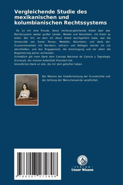 Es ist mir eine Freude, diese rechtsvergleichende Arbeit über das Rechtssystem zweier großer Länder, Mexiko und Kolumbien, mit Ihnen zu teilen. Der Ort, an dem ich diese Arbeit durchgeführt habe, war die Universität von Santo Tomas, Medellin, Kolumbien, und dank der Zusammenarbeit mit Beratern, Lehrern und Kollegen konnte ich sie abschließen, und das Engagement, die Anstrengung und vor allem die Begeisterung waren vorhanden,Schließlich gilt mein Dank dem Consejo Nacional de Ciencia y Tegnología (Conacyt), der meinen Aufenthalt finanziert hat.Unendlichen Dank an alle, die mir dort geholfen haben.
