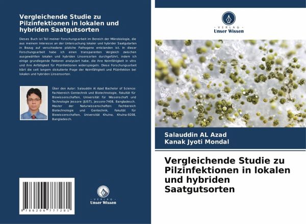Dieses Buch ist Teil meiner Forschungsarbeit im Bereich der Mikrobiologie, die aus meinem Interesse an der Untersuchung lokaler und hybrider Saatgutarten in Bezug auf verschiedene pilzliche Pathogene entstanden ist. In dieser Forschungsarbeit habe ich einen transparenten Vergleich zwischen ausgewählten lokalen und hybriden Linsensorten durchgeführt, indem ich einige grundlegende Faktoren analysiert habe, die ihre Keimfähigkeit in vitro und ihre Anfälligkeit für Pilzinfektionen widerspiegeln. Diese Forschungsarbeit klärt die seit langem diskutierte Frage der Keimfähigkeit und Pilzinfektion bei lokalen und hybriden Linsensorten.