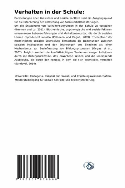 Darstellungen über Koexistenz und soziale Konflikte sind ein Ausgangspunkt für die Erforschung der Entstehung von Schulverhaltensstörungen.um die Entstehung von Verhaltensstörungen in der Schule zu verstehen (Brennan und Lo, 2011). Biochemische, psychologische und soziale Faktoren untermauern Lebenserfahrungen und Verhaltensmuster, die durch soziales Lernen reproduziert werden (Palomino und Dagua, 2009). Theoretiker der menschlichen sozialen Entwicklung betrachten die Beziehungen zwischen sozialen Institutionen und den Erfahrungen des Einzelnen als einen Mechanismus zur Beeinflussung von Bildungsprozessen (Vargas et al., 2007). Folglich werden die konfliktträchtigen Tendenzen einiger Individuen durch die Bildungsprozesse, das erworbene Wissen und die umfassende Ausbildung, die durch den Kontext, in dem sie sich entwickeln, vermittelt (Sandoval, 2014).