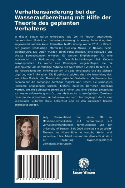 In dieser Studie wurde untersucht, wie ein im Westen entwickeltes theoretisches Modell zur Verhaltensänderung in einem Entwicklungsland angewendet werden kann. Formative Feldforschung wurde 2010 in Kibera, der größten städtischen informellen Siedlung Afrikas, in Nairobi, Kenia, durchgeführt. Die Daten wurden durch Fokusgruppen, eine Fallstudie und direkte Beobachtungen erhoben. Es wurden Empfehlungen für eine Intervention zur Reduzierung der Durchfallerkrankungen bei Kindern ausgesprochen. Es wurde eine Kampagne vorgeschlagen, die die konsequente und nachhaltige Nutzung des Safe Water Systems fördert, d. h. die Aufbereitung von Trinkwasser am Ort des Verbrauchs und die sichere Lagerung von Trinkwasser. Die Ergebnisse zeigten, dass die Anwendung des westlichen Modells, der Theorie des geplanten Verhaltens, als theoretischer Rahmen für die Kampagne durchaus möglich war, sofern die wichtigsten Probleme angegangen wurden. Erstens mussten Barrieren abgebaut werden, um die Selbstwirksamkeit zu erhöhen und eine positive Einstellung zur Wasseraufbereitung am Ort des Verbrauchs zu ermöglichen. Zweitens mussten die normativen Verhaltensweisen und Überzeugungen durch eine kenianische kulturelle Brille betrachtet und an den kulturellen Kontext angepasst werden.