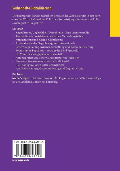Der Inhalt- Kapitalismus, Ungleichheit, Demokratie - Eine Literaturstudie- Transnationale Sozialräume. Zwischen Methodologischem Nationalismus und Kosmo-Globalismus- Ambivalenzen der Gegenbewegung. Internationale Erwerbsregulierung zwischen Einbettung und Kommodifizierung- Populistische Popkultur - Warum die Band Frei.Wild ein Verunsicherungsphänomen darstellt- Autobiografien deutscher Gangstarapper im Vergleich- Ein neuer Strukturwandel der Öffentlichkeit? (Re-)Konfigurationen unter Bedingungen von Globalisierung, Ökonomisierung und Digitalisierung