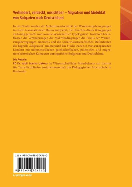 Einleitung.- Begriffsbestimmungen und Forschungskontext.- Methoden.- Emigrationsbewegungen aus Bulgarien in der Zeit des Sozialismus (1945 - 1989).- Die gesellschaftliche und politische Wende nach dem Jahr 1989.- Die bulgarische Migration nach Deutschland: Empirische Befunde und biografische Reflexionen.- Die bulgarische Migration nach Deutschland nach 2007: Individualisierung der Motive und Pluralisierung der Community.- Rückkehr nach Bulgarien: Von der Unmöglichkeit der Rückkehr zur Rückkehr als Lebensweise.- Transnationalität und Migration.- Der Transnationale Raum Bulgarien - Deutschland.- Mehrdimensionale Migrationspfade: Migration, Mobilität und Transnationalität in der Zeit des Sozialismus, Postsozialismus und der EU-Mitgliedschaft. Systematische Betrachtung der Ergebnisse.