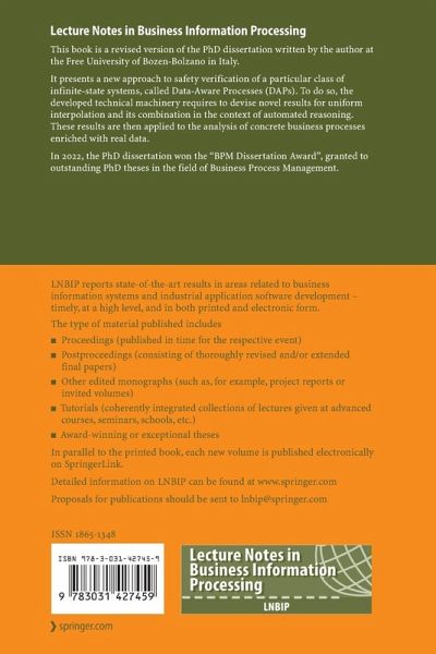 It presents a new approach to safety verification of a particular class of infinite-state systems, called Data-Aware Processes (DAPs). To do so, the developed technical machinery requires to devise novel results for uniform interpolation and its combination in the context of automated reasoning. These results are then applied to the analysis of concrete business processes enriched with real data.