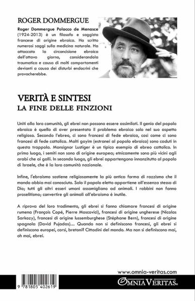 Attaccati alla loro comunità, gli ebrei non possono essere assimilati. La genialità del popolo ebraico consiste nell'aver presentato il problema ebraico solo nel suo aspetto religioso. Secondo l'ebreo, ci sono francesi di fede ebraica, così come ci sono francesi di fede cattolica. Molti goyim (estranei al popolo ebraico) sono caduti in questa trappola. Monsignor Lustiger è un tipico esempio di ebreo cattolico. Innanzitutto, i semiti non sono di origine europea; sono etnicamente vicini agli arabi, non ai galli. In secondo luogo, gli ebrei appartengono innanzitutto al popolo di Israele, che è la loro comunità nazionale.Infine, l'ebraismo approva religiosamente la più antica forma di razzismo che il mondo abbia mai conosciuto. Solo il popolo eletto appartiene all'essenza stessa di Dio; tutti gli altri esseri umani sono paragonati agli animali. I rabbini non fanno proseliti, convertire gli animali all'ebraismo è inutile. A riprova del suo tradimento, l'ebreo si fa chiamare francese di origine rumena (François Copé, Pierre Moscovici), francese di origine ungherese (Nicolas Sarkozy), francese di origine lussemburghese (Stéphane Bern), francese di origine spagnola (David Pujadas)... Quando non si definiscono francesi, gli ebrei si definiscono europei, corsi, bretoni... Un cittadino del mondo. Ma mai, oh mai, si definiscono ebrei.