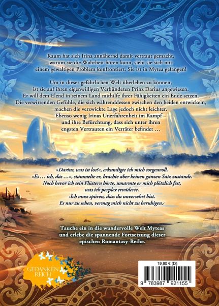 Tauche ein in die wundervolle Welt Myteas und erlebe die spannende Fortsetzung dieser epischen Romantasy-Reihe. Kaum hat sich Irina annähernd damit vertraut gemacht, warum sie die Wahrheit hören kann, sieht sie sich mit einem gewaltigen Problem konfrontiert: Sie ist in Mytea gefangen!> Um in dieser gefährlichen Welt überleben zu können, ist sie auf ihren eigenwilligen Verbündeten Prinz Darius angewiesen. Er will dem Elend in seinem Land mithilfe ihrer Fähigkeiten ein Ende setzen. Die verwirrenden Gefühle, die sich währenddessen zwischen den beiden entwickeln, machen die verzwickte Lage jedoch nicht leichter. Ebenso wenig Irinas Unerfahrenheit im Kampf - und ihre Befürchtung, dass sich unter ihren engsten Vertrauten ein Verräter befindet ... 'Darius, was ist los?', erkundigte ich mich sorgenvoll. 'Es ... ich, das ...', stammelte er, brachte aber keinen ganzen Satz zustande. Noch bevor ich sein Flüstern hörte, umarmte er mich plötzlich fest, was ich perplex erwiderte. ¿Ich muss spüren, dass du unversehrt bist. Es nur zu sehen, vermag mich nicht zu beruhigen.¿ - Das umfangreiche Maxi-Taschenbuch entspricht der Größe unserer Hardcover -