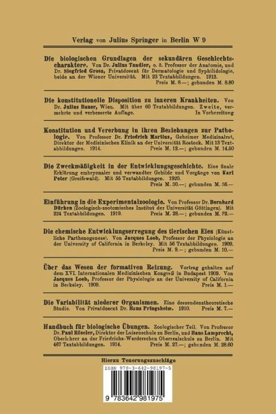 Dieser Buchtitel ist Teil des Digitalisierungsprojekts Springer Book Archives mit Publikationen, die seit den Anfängen des Verlags von 1842 erschienen sind. Der Verlag stellt mit diesem Archiv Quellen für die historische wie auch die disziplingeschichtliche Forschung zur Verfügung, die jeweils im historischen Kontext betrachtet werden müssen. Dieser Titel erschien in der Zeit vor 1945 und wird daher in seiner zeittypischen politisch-ideologischen Ausrichtung vom Verlag nicht beworben.
