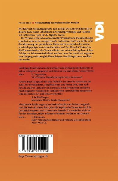Das Buch wendet sich an den Ingenieur, der zum Kunden geht. Versteht der Kunde den Ingenieur? Vermutlich nicht, falls der Kunde nicht selbst Ingenieur ist. Versteht der Ingenieur den Kunden? Vermutlich nicht, denn er ist in erster Linie Techniker. Hinzu kommen Zeit- und Kostendruck. Der Verkäufer muß möglichst schon beim Erstgespräch erfassen, worauf es dem Kunden ankommt und eine pragmatische Lösung anbieten können. Nachträgliche Veränderungen sind mit enormen Kosten und Zeitverzögerungen verbunden. Hilfe bietet dieses Buch: Es ist ein Schnellkurs in Verkaufspsychologie und Verkaufstechnik. Der Schwerpunkt des Buches ist der zielorientierte Umgang mit dem Gesprächspartner im Verkauf. Das Buch besticht durch seinen pragmatischen Ansatz. Der Autor, ein erfolgreicher Verkäufer und Verkaufstrainer, vermittelt die Ergebnisse seiner praktischen Erfahrung. Er bietet eine Anleitung zum Einsatz in der täglichen Praxis.