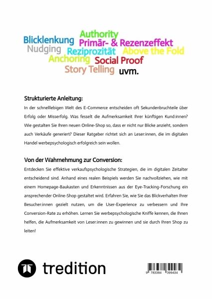 Eine Schritt für Schritt Anleitung anhand eines realen Beispiels zum Aufbau eines neuen Online-Shops. Es werden werbepsychologische Aspekte in der Theorie erklärt und - wo möglich - mit dem Homepage-Baukasten praktisch umgesetzt. Am Schluss erfolgt eine Eyetracking-Forschung, um Einsichten in die Denkweise von Besucher:innen zu erhalten.