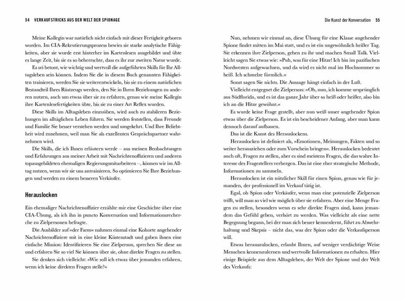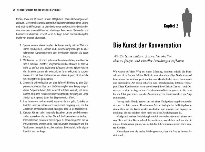 Die Kunst der BeeinflussungSie arbeiten im Verborgenen, lehren Bösewichte das Fürchten und trinken ihren Martini geschüttelt, nicht gerührt - das meiste, was wir über Geheimagenten zu wissen glauben, stammt aus der Feder findiger Autoren und Hollywood-Regisseure. Warum Spione aber in erster Linie die besten Verkäufer der Welt sind und welche ihrer Skills uns im Alltag und im Business zum operativen Erfolg verhelfen, zeigt der Sicherheitsexperte Jeremy Hurewitz.Basierend auf Interviews mit ehemaligen CIA-Fallbearbeitern und FBI-Agenten liefert er viele praxiserprobte Strategien und Taktiken aus der Welt der Geheimagenten und Verbrechensbekämpfer - von bewährten Kommunikationsfähigkeiten für Geiselverhandlungen bis hin zu subtilen Verhörtaktiken, um Informationen zu entlocken. Dieses Buch verschafft nicht nur einen einzigartigen Einblick in die Welt der Überzeugungskunst aus der Perspektive der Spione, sondern ist vor allen Dingen ein praktisches Handbuch für alle jene, die schnellBeziehungen aufbauen, mit Leichtigkeit überzeugen und erfolgreich verkaufen wollen.