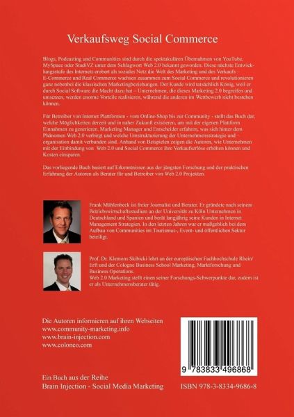 Blogs, Podcasting und Communities sind durch die spektakulären Übernahmen von YouTube, MySpace oder StudiVZ unter dem Schlagwort Web 2.0 bekannt geworden. Diese nächste Entwicklungsstufe des Internets erobert als soziales Netz die Welt des Marketing und des Verkaufs - E-Commerce und Real Commerce wachsen zusammen zum Social Commerce und revolutionieren ganz nebenbei die klassischen Marketingbeziehungen. Der Kunde wird tatsächlich König, weil er durch Social Software die Macht dazu hat - Unternehmen, die dieses Marketing 2.0 begreifen und umsetzen, werden enorme Vorteile realisieren, während die anderen im Wettbewerb nicht bestehen können. Für Betreiber von Internet Plattformen - vom Online-Shop bis zur Community - stellt das Buch dar, welche Möglichkeiten derzeit und in naher Zukunft existieren, um mit der eigenen Plattform Einnahmen zu generieren. Marketing Manager und Entscheider erfahren, was sich hinter dem Phänomen Web 2.0 verbirgt und welche Umstrukturierung der Unternehmensstrategie und -organisation damit verbunden sind. Anhand von Beispielen zeigen die Autoren, wie Unternehmen mit der Einbindung von Web 2.0 und Social Commerce ihre Verkaufserlöse erhöhen können und Kosten einsparen.Das vorliegende Buch basiert auf Erkenntnissen aus der jüngsten wissenschaftlichen Forschung und der praktischen Erfahrung der Autoren als Berater für und Betreiber von Web 2.0 Projekten.