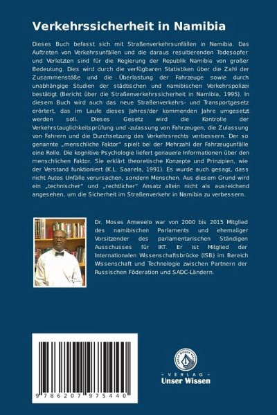 Dieses Buch befasst sich mit Straßenverkehrsunfällen in Namibia. Das Auftreten von Verkehrsunfällen und die daraus resultierenden Todesopfer und Verletzten sind für die Regierung der Republik Namibia von großer Bedeutung. Dies wird durch die verfügbaren Statistiken über die Zahl der Zusammenstöße und die Überlastung der Fahrzeuge sowie durch unabhängige Studien der städtischen und namibischen Verkehrspolizei bestätigt (Bericht über die Straßenverkehrssicherheit in Namibia, 1995). In diesem Buch wird auch das neue Straßenverkehrs- und Transportgesetz erörtert, das im Laufe dieses Jahres/der kommenden Jahre umgesetzt werden soll. Dieses Gesetz wird die Kontrolle der Verkehrstauglichkeitsprüfung und -zulassung von Fahrzeugen, die Zulassung von Fahrern und die Durchsetzung des Verkehrsrechts verbessern. Der so genannte "menschliche Faktor" spielt bei der Mehrzahl der Fahrzeugunfälle eine Rolle. Die kognitive Psychologie liefert genauere Informationen über den menschlichen Faktor. Sieerklärt theoretische Konzepte und Prinzipien, wie der Verstand funktioniert (K.L. Saarela, 1991). Es wurde auch gesagt, dass nicht Autos Unfälle verursachen, sondern Menschen. Aus diesem Grund wird ein "technischer" und "rechtlicher" Ansatz allein nicht als ausreichend angesehen, um die Sicherheit im Straßenverkehr in Namibia zu verbessern.