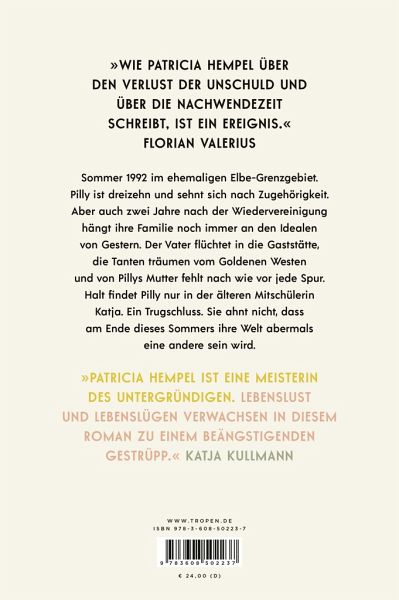 »Wie Patricia Hempel über den Verlust der Unschuld und über die Nachwendezeit schreibt, ist ein Ereignis.« Florian Valerius