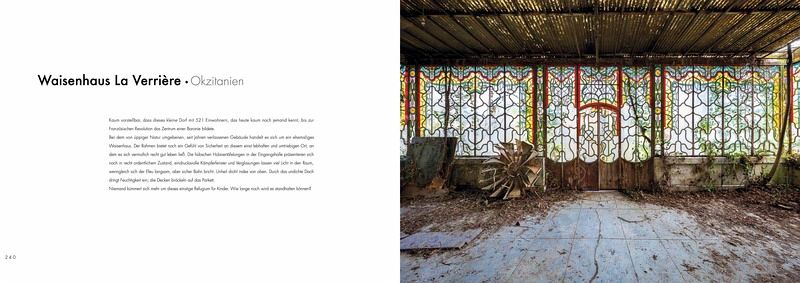 Robin Brinaert verewigt in seinen Aufnahmen ein aufgegebenes Kulturerbe und lädt den Betrachter ein, in vergessene Bereiche der Geschichte einzutauchen, deren einzigartige Details nicht selten erst in ihrem Niedergang zu voller Geltung gelangen. Neben der Schönheit dieser schlafenden Kleinode lenkt der Fotograf und Autor unseren Blick auch auf ihr ungewisses Schicksal und den Respekt, den wir ihnen schulden, um zu retten, was noch zu retten ist. Eine außergewöhnliche Fotoreportage, Ergebnis von einem Jahrzehnt der Streifzüge durch ganz Frankreich.