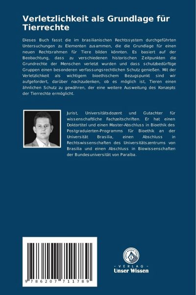 Dieses Buch fasst die im brasilianischen Rechtssystem durchgeführten Untersuchungen zu Elementen zusammen, die die Grundlage für einen neuen Rechtsrahmen für Tiere bilden könnten. Es basiert auf der Beobachtung, dass zu verschiedenen historischen Zeitpunkten die Grundrechte der Menschen verletzt wurden und dass schutzbedürftige Gruppen einen besonderen verfassungsrechtlichen Schutz genießen. Mit der Verletzlichkeit als wichtigem bioethischem Bezugspunkt sind wir aufgefordert, darüber nachzudenken, ob es möglich ist, Tieren einen ähnlichen Schutz zu gewähren, der eine weitere Ausweitung des Konzepts der Tierrechte ermöglicht.