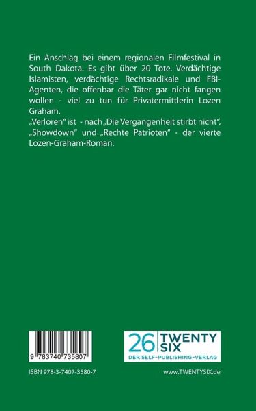 Ein Anschlag bei einem regionalen Filmfestival in South Dakota. Es gibt über 20 Tote. Verdächtige Islamisten, verdächtige Rechtsradikale und FBI-Agenten, die offenbar die Täter gar nicht fangen wollen - viel zu tun für Privatermittlerin Lozen Graham."Verloren" ist - nach "Die Vergangenheit stirbt nicht", "Showdown" und "Rechte Patrioten" - der vierte Lozen-Graham-Roman.