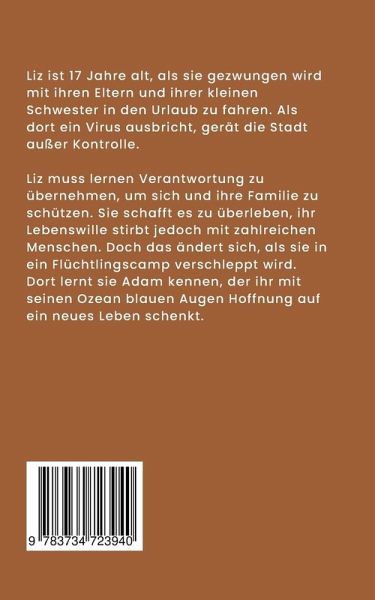 Lizzy ist 17 Jahre alt, als sie gezwungen wird mit ihrer Familie in den Urlaub zu fahren. Als ein Virus ausbricht, gerät die Stadt außer Kontrolle. Liz muss lernen Verantwortung zu übernehmen, um sich und ihre Familie zu schützen. Sie schafft es zu überleben, ihr Lebenswille jedoch stirbt mit zahlreichen Menschen. Doch das ändert sich, als sie in ein Flüchtlingscamp verschleppt wird. Dort lernt sie Adam kennen, der ihr mit seinen Ozean farbigen Augen Hoffnung auf ein neues Leben schenkt. Als die beiden sich nach einem schwierigen Kennenlernen annähern, vergisst Liz ihren eigentlich Plan ihr Zuhause zu suchen. Ihre Hoffnung auf noch lebende Freunde kehrt zurück, als eine Entdeckung gemacht wird, die sie zurück an ihr altes Leben denken lässt. Wird Adam Liz helfen und sich mit ihr auf eine Reise begeben, die nicht nur Gefahr für ihr Leben sondern auch für ihre Liebe bedeuten könnte?
