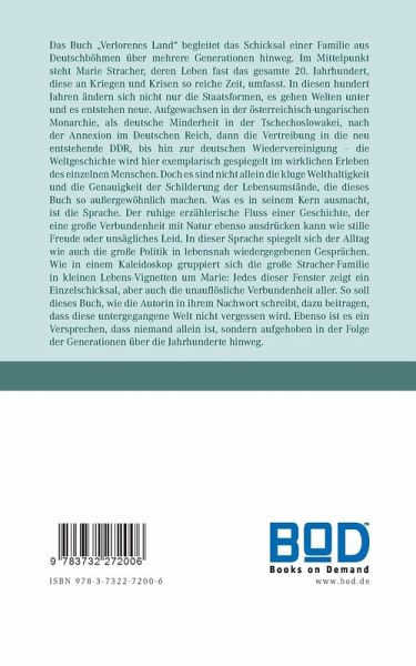 Das Buch "Verlorenes Land" begleitet das Schicksal einer Familie aus Deutschböhmen über mehrere Generationen hinweg. Im Mittelpunkt steht Marie Stracher, deren Leben fast das gesamte 20. Jahrhundert, diese an Kriegen und Krisen so reiche Zeit, umfasst. In diesen hundert Jahren ändern sich nicht nur die Staatsformen, es gehen Welten unter und es entstehen neue. Aufgewachsen in der österreichisch-ungarischen Monarchie, als deutsche Minderheit in der Tschechoslowakei, nach der Annexion im Deutschen Reich, dann die Vertreibung in die neu entstehende DDR, bis hin zur deutschen Wiedervereinigung - die Weltgeschichte wird hier exemplarisch gespiegelt im wirklichen Erleben des einzelnen Menschen. Doch es sind nicht allein die kluge Welthaltigkeit und die Genauigkeit der Schilderung der Lebensumstände, die dieses Buch so außergewöhnlich machen. Was es in seinem Kern ausmacht, ist die Sprache. Der ruhige erzählerische Fluss einer Geschichte, der eine große Verbundenheit mit Natur ebenso ausdrücken kann wie stille Freude oder unsägliches Leid. In dieser Sprache spiegelt sich der Alltag wie auch die große Politik in lebensnah wiedergegebenen Gesprächen. Wie in einem Kaleidoskop gruppiert sich die große Stracher-Familie in kleinen Lebens-Vignetten um Marie: Jedes dieser Fenster zeigt ein Einzelschicksal, aber auch die unauflösliche Verbundenheit aller. So soll dieses Buch, wie die Autorin in ihrem Nachwort schreibt, dazu beitragen, dass diese untergegangene Welt nicht vergessen wird. Ebenso ist es ein Versprechen, dass niemand allein ist, sondern aufgehoben in der Folge der Generationen über die Jahrhunderte hinweg.
