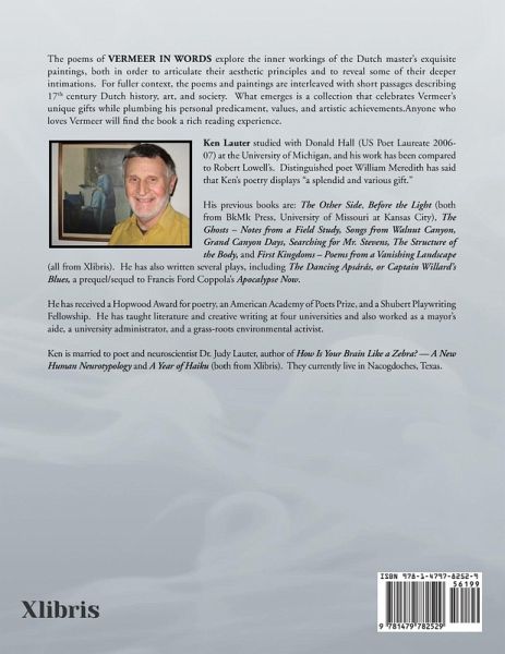 The poems of VERMEER IN WORDS explore the inner workings of the Dutch master's exquisite paintings, both in order to articulate their aesthetic principles and to reveal some of their deeper intimations. For fuller context, the poems and paintings are interleaved with short passages describing 17th century Dutch history, art, and society. What emerges is a collection that celebrates Vermeer's unique gifts while plumbing his personal predicament, values, and artistic achievements. Anyone who loves Vermeer will find the book a rich reading experience.
