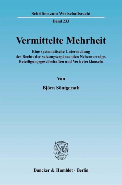 Björn Söntgerath nimmt in der vorliegenden Arbeit eine systematische Untersuchung des Rechts der satzungsergänzenden Gesellschafterabsprachen, Vertreterklauseln und Beteiligungsgesellschaften vor. Durch den Abschluss dieser, auf eine Hauptgesellschaft (korporative Regelungsebene) bezogenen Vereinbarungen entsteht ein gesonderter Regelungskreis (sog. schuldrechtliche Ebene). Sie eröffnen den teilnehmenden Gesellschaftern die Möglichkeit einer Mediatisierung ihrer Rechte in der Hauptgesellschaft, insbesondere des Stimmrechts.