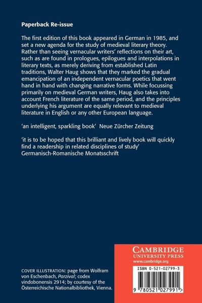The first edition of this book appeared in German in 1985, and set a new agenda for the study of medieval literary theory. Rather than seeing vernacular writers' reflections on their art, such as are found in prologues, epilogues and interpolations in literary texts, as merely deriving from established Latin traditions, Walter Haug shows that they marked the gradual emancipation of an independent vernacular poetics that went hand in hand with changing narrative forms. While focussing primarily on medieval German writers, Haug also takes into account French literature of the same period, and the principles underlying his argument are equally relevant to medieval literature in English or any other European language. This ground-breaking study is now available in English for the first time.
