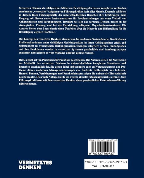 Methodische Grundlagen.- 1. Die Methodik des vernetzten Denkens zur Lösung komplexer Probleme.- Strategisches Management.- 2. Vernetztes Denken für die Stratgische Führung eines Zeitschriftenverlages.- 3. Vernetztes Denken im Schweizerischen Bankverein.- 4. Vernetztes Denken im Einzelhandel - Erfolgsfaktoren einer Buchhandelskette.- Szenarien politischer und gesellschaftlicher Entwicklungen für die Unternehmensplanung.- 5. Vernetztes Denken in einer Werbeagentur.- 6. Die Pharmaindustrie und die Herausforderung des europäischen Binnenmarktes Dargestellt am Beispiel der CIBA-GEIGY.- 7. Die Unternehmung im Netzwerk des gesellschaftlich politischen Umfeldes.- Neue Produkte und Neue Märkte.- 8. Vernetztes Denken bei der Markteinführung neuer Produkte Dargestellt am Beispiel der Hilti AG.- 9. Vernetztes Denken bei Unilever Die Veränderungen der Konsumgewohnheiten und ihre Auswirkungen auf die Nahrungsmittelindustrie.- 10. Vernetztes Denken - Praxis in der SWISSAIR Dargestellt am Beispiel der "Überprüfung unserer Dienstleistung".- Früherkennung in der Unternehmung.- 11. Vernetztes Denken für die Früherkennung bei Swissair.- 12. Strategische Planung und Frühwarnung durch Netzwerke bei Hewlett-Packard.- 13. Entwicklung eines Frühwarnsystems für die Patria Versicherungen.- Vom Prozeßmanagement zum industriellen Projektmanagement.- 14. Vernetztes Denken und Handeln bei der Führung von Arbeitsgruppen und eines Projektes Dargestellt an Beispielen aus der Allianz Versicherung.- 15. Vernetztes Denken bei der Entwicklung eines Leitbildes für die Krankenhausführung.- 16. Vernetztes Denken und Handeln in der Projektabwicklung.- Manager und vernetztes Denken.- 17. Was also macht eine systemorientierte Führungskraft als "Vertreter des vernetzten Denkens"?.-Autorenverzeichnis.