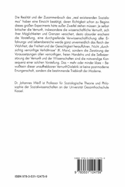 Die Realität und der Zusammenbruch des "real existierenden Sozialismus" haben eine Einsicht bestätigt, deren Richtigkeit schon zu Beginn dieses großen Experiments hätte außer Zweifel stehen müssen: Je selbstkritischer die Vernunft, insbesondere die wissenschaftliche Vernunft, sich ihrer Möglichkeiten und Grenzen versichert, desto absurder erscheint die Vorstellung, eine durchgreifende Verwissenschaftlichung aller Erfahrungs- und Lebensbereiche werde ganz unvermeidlich das Reich der Wahrheit, der Freiheit und der Gerechtigkeit heraufführen. Nicht "durchsichtig vernünftige Verhältnisse" (K. Marx), sondern die Zerstörung der Voraussetzungen allen vernünftigen, freien Handelns und die Selbstzerstörung der Vernunft und der Wissenschaften sind die notwendige Konsequenz einer solchen Vorstellung. Das - mehr oder minder klare - Bewußtsein dieser unaufhebbaren Vernunft-Dialektik ist keine post-moderne Errungenschaft, sondern die bestimmende Triebkraft der Moderne.