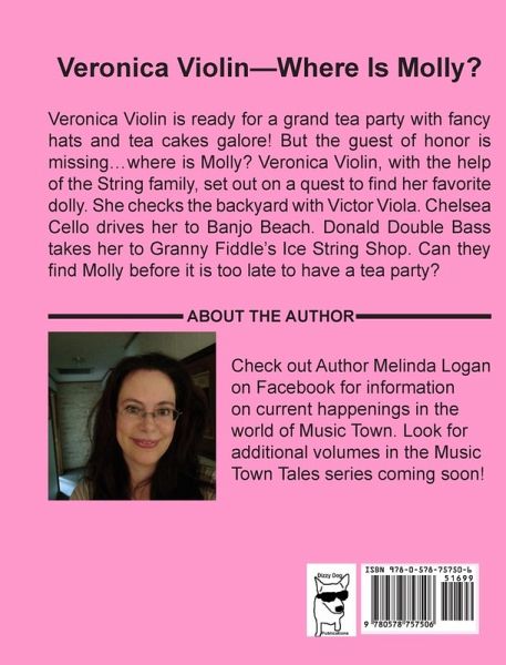 Veronica Violin is ready for a grand tea party with fancy hats and tea cakes galore! But the guest of honor is missing...where is Molly? Veronica Violin, with the help of the String family, set out on a quest to find her favorite dolly. She checks the backyard with Victor Viola. Chelsea Cello drives her to Banjo Beach. Donald Double Bass takes her to Granny Fiddle's Ice String Shop. Can they find Molly before it is too late to have a tea party? The Music Town Tales Series features a world where instruments come to life before your very eyes! Children will delight in the rhyming text and colorful images. Adults will enjoy the educational aspects of introducing children to musical themes and instrument recognition in a fun, fresh way. Look for additional titles in the Music Town Tales Series, and don't forget to check out Author Melinda Logan on Facebook.