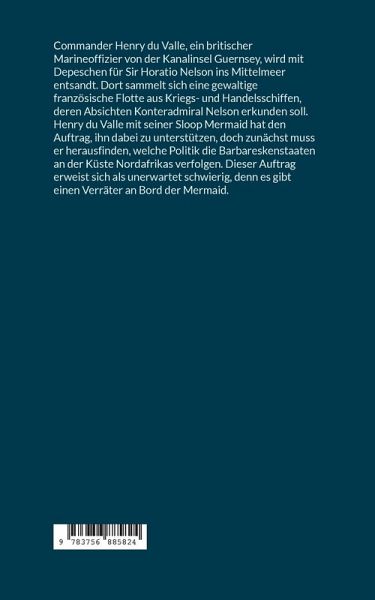 Commander Henry du Valle, ein britischer Marineoffizier von der Kanalinsel Guernsey, wird mit Depeschen für Sir Horatio Nelson ins Mittelmeer entsandt. Dort sammelt sich eine gewaltige französische Flotte aus Kriegs- und Handelsschiffen, deren Absichten Konteradmiral Nelson erkunden soll. Henry du Valle mit seiner Sloop Mermaid hat den Auftrag, ihn dabei zu unterstützen, doch zunächst muss er herausfinden, welche Politik die Barbareskenstaaten an der Küste Nordafrikas verfolgen. Dieser Auftrag erweist sich als unerwartet schwierig, denn es gibt einen Verräter an Bord der Mermaid.