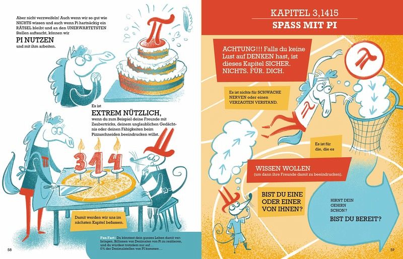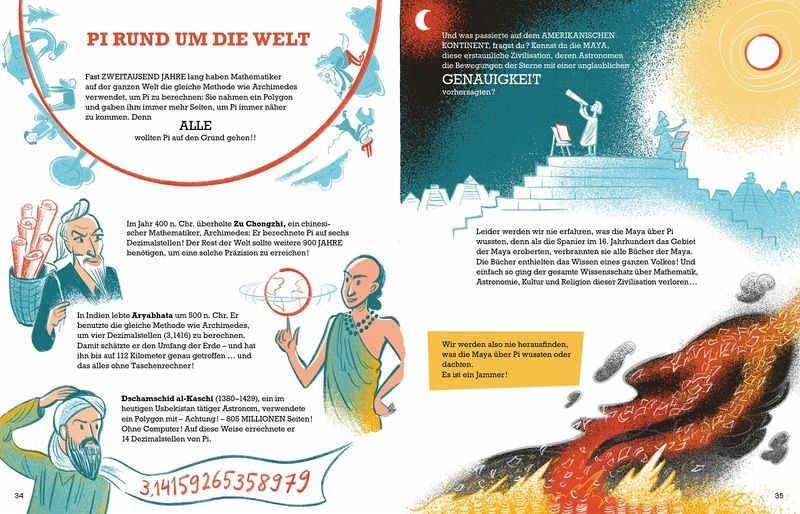 Seit Jahrtausenden beschäftigt die Zahl Pi die Menschen. Natürlich ist sie praktisch, um einen Fußball, ein Gehege oder einen Brückenbogen zu berechnen, aber was um einiges spannender ist: Pi ist unendlich, irrational und magisch! In seinen Nachkommastellen finden sich die Geburtsdaten aller Kinder, die jemals gelebt haben oder leben werden, ganze Musikstücke oder die kompletten Werke von Shakespeare. Pi hört nie auf, und die Menschen können nicht aufhören, die Zahl zu berechnen. So sind derzeit Billionen von Pi-Dezimalstellen bekannt, obwohl seine ersten 15 völlig ausreichen, um eine Rakete zum Mars zu schicken!Vom Griechen Archimedes bis zum Inder Srinivasa Ramanujan (der in seinen Träumen eine Formel zur Berechnung von Pi sah, die noch heute von Computern verwendet wird), von den Alten Ägyptern, den Mayas, den Arabern, den Chinesen und anderen Mathematikbegeisterten aus aller Welt und allen Epochen - Pi ist ein außergewöhnliches Abenteuer, das nicht nur Landesgrenzen, sondern auch die der Unendlichkeit durchbricht.Geschrieben von einem Mathematiker und Magier mit einer Leidenschaft für Pi und einer preisgekrönten Kinderbuchautorin, führt euch Verrückt nach Pi durch Geschichte, Geografie, Philosophie und Mathematik, immer auf den Spuren dieser schwer fassbaren Zahl, die die Menschen ... verrückt und die Mathematik faszinierend machen kann. Und ganz nebenbei lernt ihr einige Kniffe, Zaubertricks und sogar Witze, mit denen ihr eure Freundinnen und Freunde verblüffen könnt.