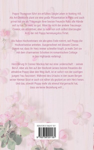 Was würdest du tun, wenn dich deine beste Freundin fragt, ob du ihre Flitterwochen antrittst, ausgerechnet mit einem schottischen Herzchirurgen, der sich selbst für unwiderstehlich hält?Die quirlige Poppy Thompson liebt ihr Leben als überzeugter Single in London. Affären ja, Beziehung nein. Schließlich hat ihr Job als Art-Direktorin oberste Priorität.Als ihre beste Freundin Ruby heiratet, hat Poppy als Trauzeugin alle Hände voll zu tun, die hochnervöse Braut in den Griff zu bekommen.Aber als wäre das nicht schon genug, erweist sich der andere Trauzeuge als wenig hilfreich. Dr Connor Mackay, ein attraktiver Herzchirurg, scheint ein geradezu diebisches Vergnügen daran zu haben, Poppy in Verlegenheit zu bringen.Die Hochzeit endet für die Braut im Krankenhaus. Aus der Traum von den Flitterwochen in einem romantischen Cottage in Schottland.Poppy und Connor sollen einspringen und die Hochzeitsreise antreten.So weit, so gut, schließlich kann Poppy eine Auszeit dringend gebrauchen.Dumm nur, dass ihre Hormone verrücktspielen, je mehr Zeit sie mit dem charmanten Connor in den rauen Highlands verbringt.Herzchirurg Dr Connor Mackay hat nur eine Leidenschaft, seinen Beruf. Allerdings braucht er erst mal Abstand, denn eigentlich soll er die neutrale Distanz zu seinen kleinen Patienten wahren. Warum nur gelingt ihm das bei Henry nicht, einem achtjährigen Waisenkind?Als ihm dann auch noch auf der Hochzeit seines besten Freundes die attraktive Poppy über den Weg läuft, ist er sofort von der lebhaften, jungen Frau fasziniert.Während des Urlaubs in den rauen Bergen seiner Heimat lässt er auch sie näher an sein Herz heran als geplant.Und das, obwohl Poppy mehr als einmal klargemacht hat, dass sie keine Beziehung will.Atmosphärisch, romantisch und lebensfroh. Der neue sommerliche Wohlfühl-Roman von Bestseller-Autorin Martina Gercke.