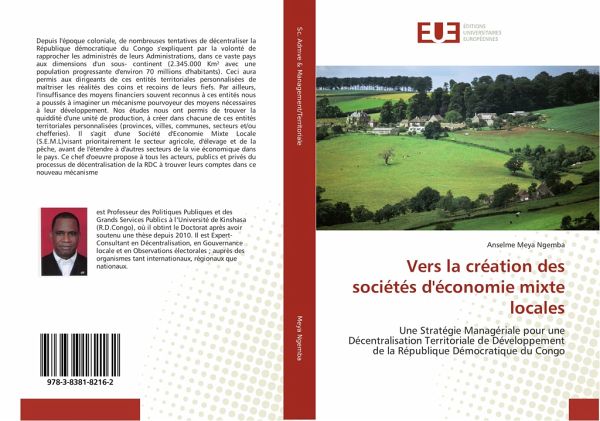 Depuis l'époque coloniale, de nombreuses tentatives de décentraliser la République démocratique du Congo s'expliquent par la volonté de rapprocher les administrés de leurs Administrations, dans ce vaste pays aux dimensions d'un sous- continent (2.345.000 Km² avec une population progressante d'environ 70 millions d'habitants). Ceci aura permis aux dirigeants de ces entités territoriales personnalisées de maîtriser les réalités des coins et recoins de leurs fiefs. Par ailleurs, l'insuffisance des moyens financiers souvent reconnus à ces entités nous a poussés à imaginer un mécanisme pourvoyeur des moyens nécessaires à leur développement. Nos études nous ont permis de trouver la quiddité d'une unité de production, à créer dans chacune de ces entités territoriales personnalisées (provinces, villes, communes, secteurs et/ou chefferies). Il s'agit d'une Société d'Economie Mixte Locale (S.E.M.L)visant prioritairement le secteur agricole, d'élevage et de la pêche, avant de l'étendre à d'autres secteurs de la vie économique dans le pays. Ce chef d'oeuvre propose à tous les acteurs, publics et privés du processus de décentralisation de la RDC à trouver leurs comptes dans ce nouveau mécanisme