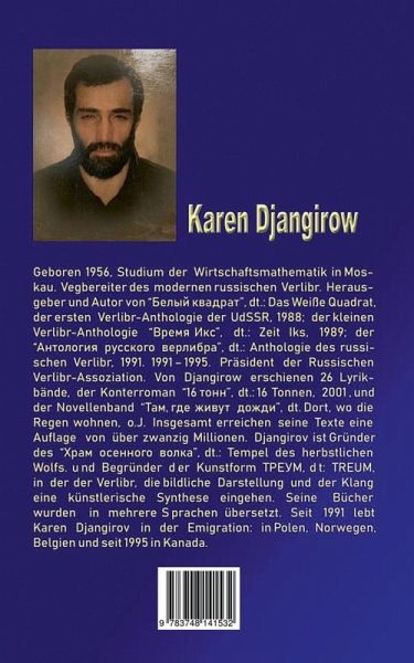 Über die freien Verse von Karen Dshangirow zu schreiben ist gar nicht so einfach, vor allem deshalb, weil es mit fremden Worten unmöglich ist, ihren Zauber auch nur annähernd zu erahnen, am besten sprechen sie für sich selbst. Jede seiner Miniaturen explodiert zu einem ganzen Universum, seine sparsamen Zeilen bohren sich nadelscharf in unser Herz, wir versinken in langes Nachdenken und spüren unsere Verbundenheit. Verbundenheit womit? Kann Dshangirows Welt auch die unsere werden? Vielleicht erahnt der Dichter ja unser Tiefinnerstes und lässt den heilenden Balsam seiner Zeilen in unsere nach Trost dürstenden Seelen fließen, und wir fühlen uns zugleich traurig und zufrieden.