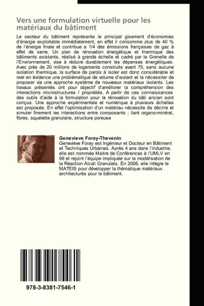Le secteur du bâtiment représente le principal gisement d économies d énergie exploitable immédiatement, en effet il consomme plus de 40 % de l énergie finale et contribue a 1/4 des émissions françaises de gaz à effet de serre. Un plan de rénovation énergétique et thermique des bâtiments existants, réalisé à grande échelle et cadré par le Grenelle de l Environnement, vise à réduire durablement les dépenses énergétiques. Avec près de 20 millions de logements construits avant 75, sans aucune isolation thermique, la surface de parois à isoler est donc considérable et met en évidence une problématique de volume d isolant et la nécessiter de proposer via une approche système de nouveaux matériaux isolants. Les travaux présentés ont pour objectif d améliorer la compréhension des interactions microstructures / propriétés. A partir de ces connaissances des outils d aide à la formulation pour la rénovation du bâti ancien sont conçus. Une approche expérimentale et numérique à plusieurs échelles est proposée. En effet l optimisation d un matériau nécessite de décrire et simuler finement les interactions entre composants : liant organo-minéral, fibres, squelette granulaire, structure poreuse