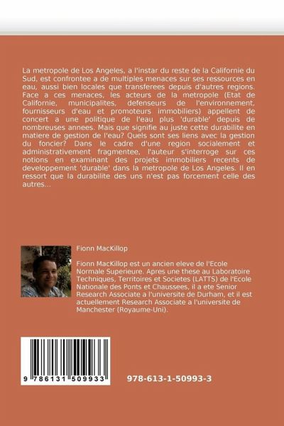La metropole de Los Angeles, a l'instar du reste de la Californie du Sud, est confrontee a de multiples menaces sur ses ressources en eau, aussi bien locales que transferees depuis d'autres regions. Face a ces menaces, les acteurs de la metropole (Etat de Californie, municipalites, defenseurs de l'environnement, fournisseurs d'eau et promoteurs immobiliers) appellent de concert a une politique de l'eau plus 'durable' depuis de nombreuses annees. Mais que signifie au juste cette durabilite en matiere de gestion de l'eau? Quels sont ses liens avec la gestion du foncier? Dans le cadre d'une region socialement et administrativement fragmentee, l'auteur s'interroge sur ces notions en examinant des projets immobiliers recents de developpement 'durable' dans la metropole de Los Angeles. Il en ressort que la durabilite des uns n'est pas forcement celle des autres...