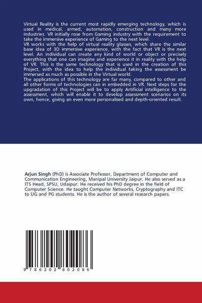 Virtual Reality is the current most rapidly emerging technology, which is used in medical, armed, automation, construction and many more industries. VR initially rose from Gaming industry with the requirement to take the immersive experience of Gaming to the next level.VR works with the help of virtual reality glasses, which share the similar base idea of 3D immersive experience, with the fact that VR is the next level. An individual can create any kind of world or object or precisely everything that one can imagine and experience it in reality with the help of VR. This is the same technology that is used in the creation of this Project, with the idea to help the individual taking the assessment be immersed as much as possible in the Virtual world.The applications of this technology are far many, compared to other and all other forms of technologies can in embedded in VR. Next steps for the upgradation of this Project will be to apply Artificial intelligence to the assessment, which will enable it to develop assessment scenarios on its own, hence, giving an even more personalised and depth-oriented result.