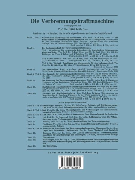 Erster Teil. Verschleiß in Verbrennungskraftmaschienen.- A. Allgemeines über Verschleißersclieinungen.- I. Die Begriffe "Abnutzung" und "Verschleiß".- II. Verschleißarten.- III. Verschleißverhalten verschiedener Werkstoffe.- B. Verschleiß von Motorbauteilen.- I. Zylinder und Kolbenringe.- II. Kolben.- III. Filter.- IV. Ventile, Ventilsitze und Ventilführungen.- V. Gleitlager.- VI. Wälzlager.- VII. Kurbelwellen.- VIII. Zahnräder.- IX. Schmieröl und Verschleiß.- Zweiter Teil. Verbrauch von Betriebsmitteln.- A. Kraftstoffverbrauch.- I. Einleitung.- II. Kraftstoffverbrauchsmessungen.- III. Mechanischer Wirkungsgrad und Verbrauch.- IV. Einfluß der Eigenschaften der Betriebsstoffe auf den Verbrauch.- V. Wärmebilanzen.- VI. Durchführung und Auswertung von Kraftstoffverbrauchsmessungen.- VII. Verbrauchsangaben ausgeführter Motoren.- B. Schmierölverbrauch.- I. Tauchschmierung.- II. Frischölschmierung.- III. Druckumlaufschmierung.- IV. Mischungsschmierung.- V. Schmierölverbrauchsmessungen und Ölverbrauch ausgeführter Motoren.- C. Kühlmittelverbrauch.- I. Wasserkühlung.- II. Heißkühlung.- III. Ölkühlung.- IV. Luftkühlung.- Dritter Teil. Wirtschaftlichkeit.- A. Allgemeines.- B. Ortsfeste Anlagen und Schiffsanlagen.- C. Kraftfahrzeuge.- D. Scheppermotoren und Hilfsmotoren in der Landwirtschaft.- E. Schlußwort.