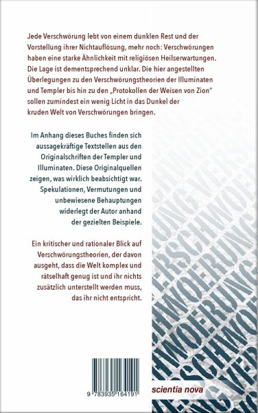 Jede Verschwörung lebt von einem dunklen Rest und der Vorstellung ihrer Nichtauflösung, mehr noch: Verschwörungen haben eine starke Ähnlichkeit mit religiösen Heilserwartungen. Die Lage ist dementsprechend unklar. Die hier angestellten Überlegungen zu den Verschwörungstheorien der Illuminaten und Templer bis hin zu den "Weisen von Zion" sollen zumindest ein wenig Licht in das Dunkel der kruden Welt von Verschwörungen bringen. Im Anhang finden sich aussagekräftige Auszüge aus den Original-Schriften der Templer und Illuminaten. Die ausgewählten Originalquellen zeigen, was wirklich beabsichtigt war. Spekulationen, unbegründete Vermutungen und unbewiesene Behauptungen widerlegt der Autor mit ausgewählten Beispielen. Ein kritischer und rationaler Blick auf Verschwörungstheorien, der davon ausgeht, dass die Welt komplex und rätselhaft genug ist und ihr nichts zusätzlich unterstellt werden muss, was ihr nicht entspricht. Inhalt: Über die erste Verschwörung Verschwörungstheorien sind Theorien Verschwörung und Heilserwartung Illuminaten Die Illuminaten erobern Amerika Weltrevolution und Weltherrschaft: Die Protokolle der Weisen von Zion Politische Geheimbünde und Verschwörungen: NS-Ideologie und Thule-Gesellschaft Die geheimen Templer Geheimdienste und Verschwörung: CIA, JFK und 9/11 Eine Liste zu behandelnder Verschwörungstheorien Nachbetrachtung: Cui bono - Wem nützt es? 10 Ratschläge was tun, wenn Sie sich mit einer Verschwörungstheorie konfrontiert sehen Anhang 1: Verschwörung als Gleichung Anhang 2: Auszüge aus den Originalschriften der Illuminaten und Templer Literaturliste