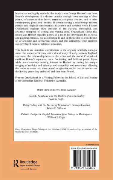 Innovative and highly readable, this study traces George Herbert's and John Donne's development of a distinct poetics through close readings of their poetry, as well as letters, sermons, and prose treatises. In demonstrating a relationship between poetics and religious consciousness, Frances Cruickshank explores the poets' privileging of verse, and makes an important contribution to the ongoing scholarly dialogue about the nature of literary and cultural study of early modern England